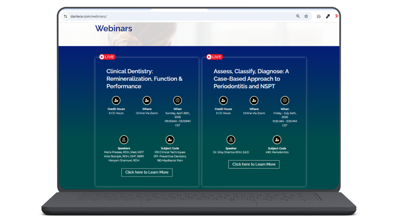 Available nationwide for Conventions, State Dental Meetings, Study Clubs, Corporate CE programs, Lunch and Learns, and Webinars. Courses customized from 2 to 8 hours.
